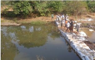 Due to high rate of runoff in red lateritic soils water availability declines steadily after end of January. Thus it becomes difficult to cultivate rabi crops that require irrigation for obtaining good yield. Harvesting water flowing in streams by constructing Konkan Vijay bandhara is one of the major activities undertaken in NICRA project. Water stored in these temporary dams is used for irrigating rabi crops like cowpea, horse gram, watermelon, groundnut etc.